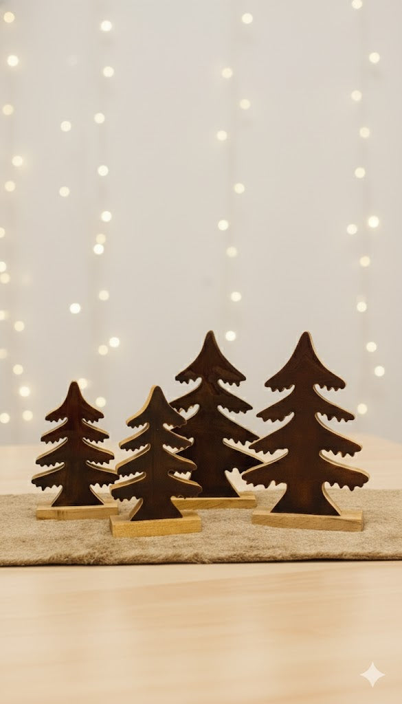 Árbol decorativo en madera y esmalte marrón.