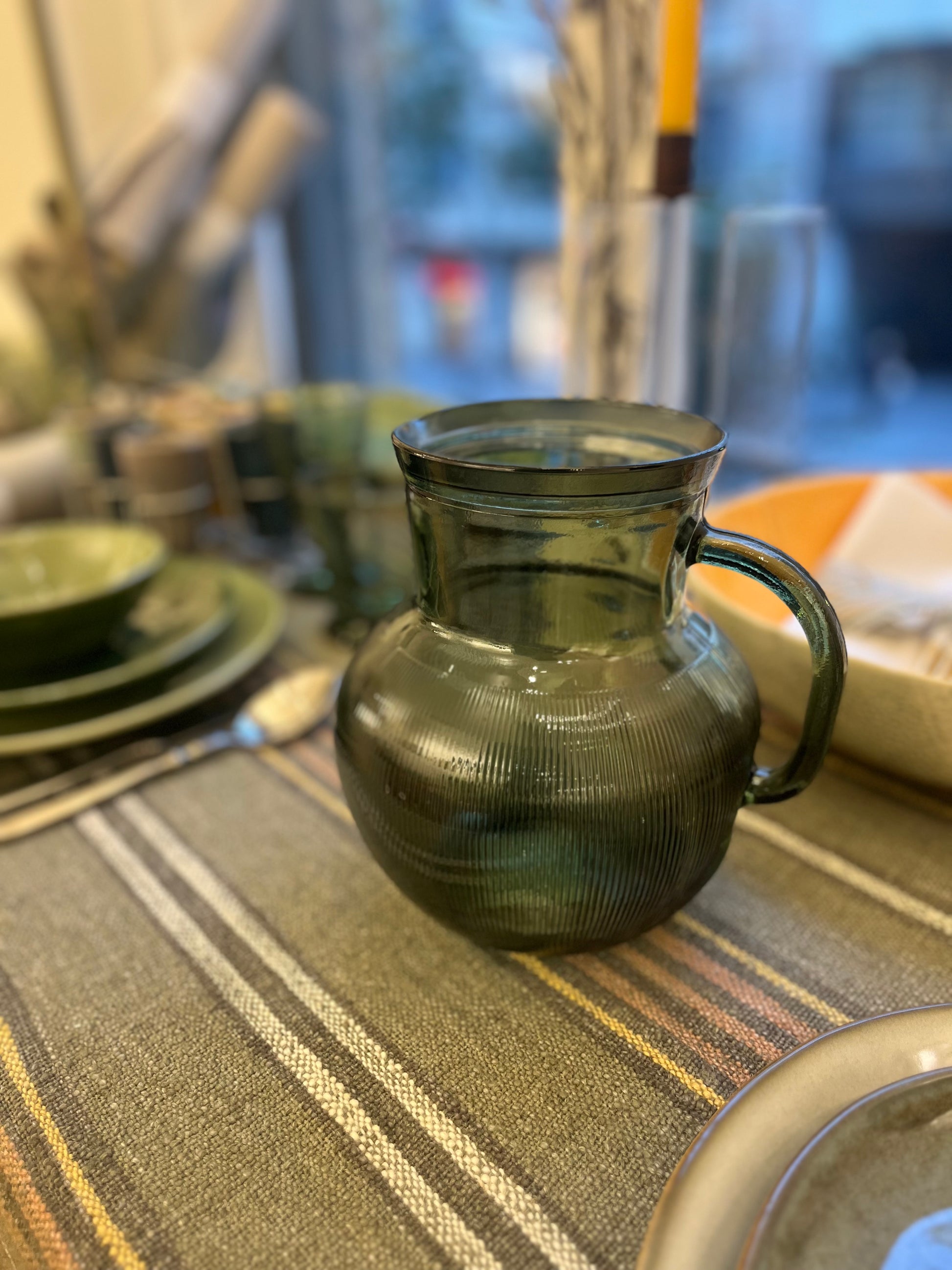 Jarra de cristal reciclado color verde.
